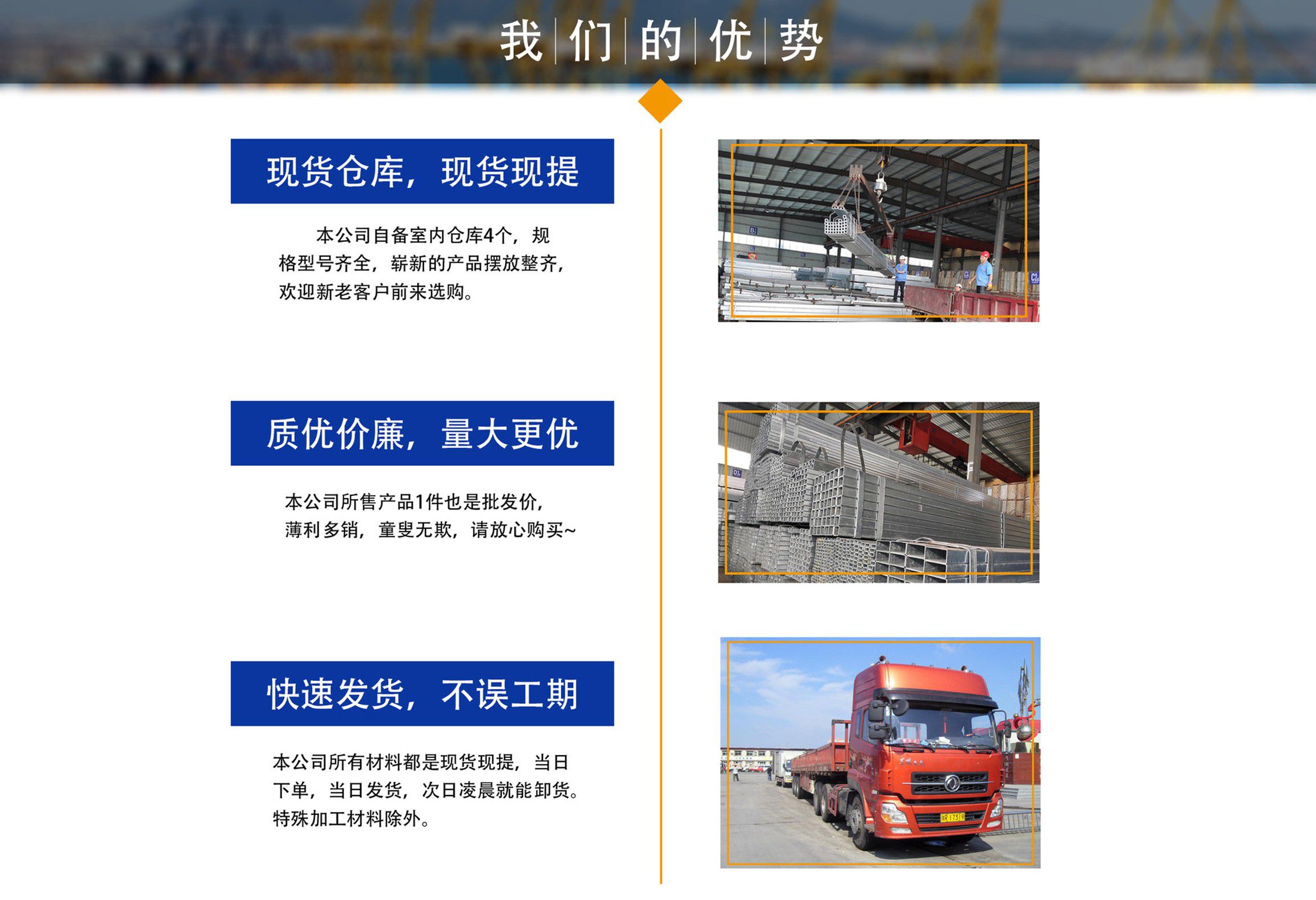 天津鍍鋅方管廠位于天津市靜海大邱莊工業區,交通便利,地理位置優越。我廠占地面積近9000平方米,注冊資金1000萬元,主要從事鍍鋅方管,鍍鋅方矩管,熱鍍鋅方管,鍍鋅方管廠家等產品的生產及銷售,現生產設備已擴大到六條,年生產量十萬噸左右占地面積近兩萬平米。銷售網絡遍及全國,受到廣大用戶認可。公司恪守以誠信為本,立業為眾的經營理念,以可靠的質量、合理的價格、優質的服務、卓絕的信譽、期待您的關注和支持?! 」編齑媪看螅馁|規格齊全,沒有規格及特殊規格材質方管可及時定貨生產,我公司經營方式靈活,批零兼營、一支起售,并可為客戶辦理鐵路、公路運輸,7*24小時為您服務,歡迎新老客戶來電垂詢?! 」疽恢眻猿帧耙再|量求生存,以產品求發展,以信譽保合作,以服務贏客戶”的經營方針,客戶遍及大江南北,獲得了良好的聲譽與回報,在以后的發展歷程中,我們愿與廣大客戶攜手并進,共創輝煌。 熱忱歡迎新老客戶蒞臨指導、洽談業務!...